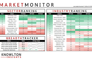 A quantitative summary of market leadership, breadth, and positioning risk.