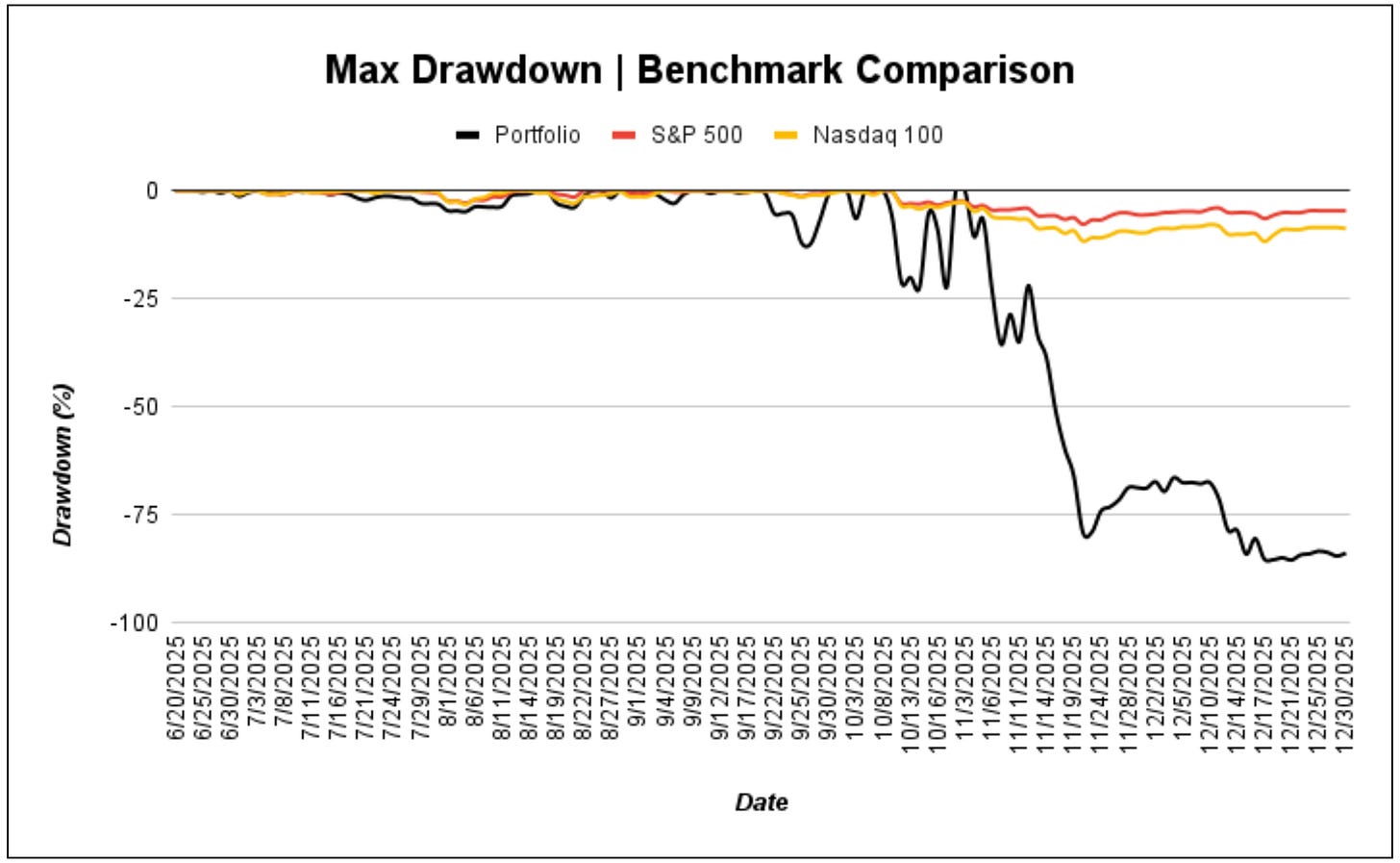 This approach led to volatility in the equity curve, but also allowed the portfolio to recover and grow once conditions improved. The ability to remain solvent and emotionally stable through drawdowns proved just as important as trade selection.
