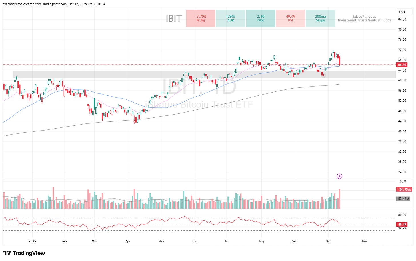 IBIT continued its trend early in the week, pressing into fresh highs before profit-taking set in; the pullback remained orderly until Friday, when the entire crypto market was hit hard after-hours. I will not be closing any trades on IBIT (already a free position), but I will likely be managing ETHA, as I will talk about shortly.